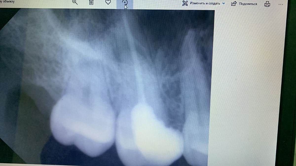 Прошу посмотреть снимок, есть ли воспаление зубных каналов (опломбированный зуб, но он у меня раскололся сейчас)?