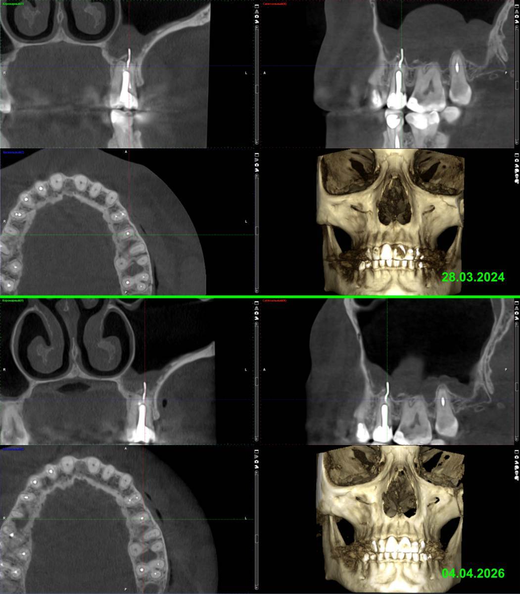 safroxa Опубликовано 12 часов назад Поделиться Опубликовано 12 часов назад (изменено) Здравствуйте дорогие доктора, очень хотелось бы послушать ваши мнения, ситуация такова: в 2023 году пролечила зуб №25, его можно сказать собрали из ничего, поставили огромный штифт и сразу же порекомендовали накрывать коронкой... По совету другого доктора решили понаблюдать за зубом и коронками не накрывать. В итоге на КТ наблюдается выход материала в пазуху, киста (воспаление), хирург рекомендует удалять этот зуб. Может быть есть смысл сделать резекцию или шансов для этого зуба 0? Подскажите пожалуйста решение, заранее благодарю. Ссылка на более качественное изображение снимков https://disk.yandex.ru/i/u07qjP042Lrfhw Изменено 12 часов назад пользователем safroxa Ссылка на комментарий